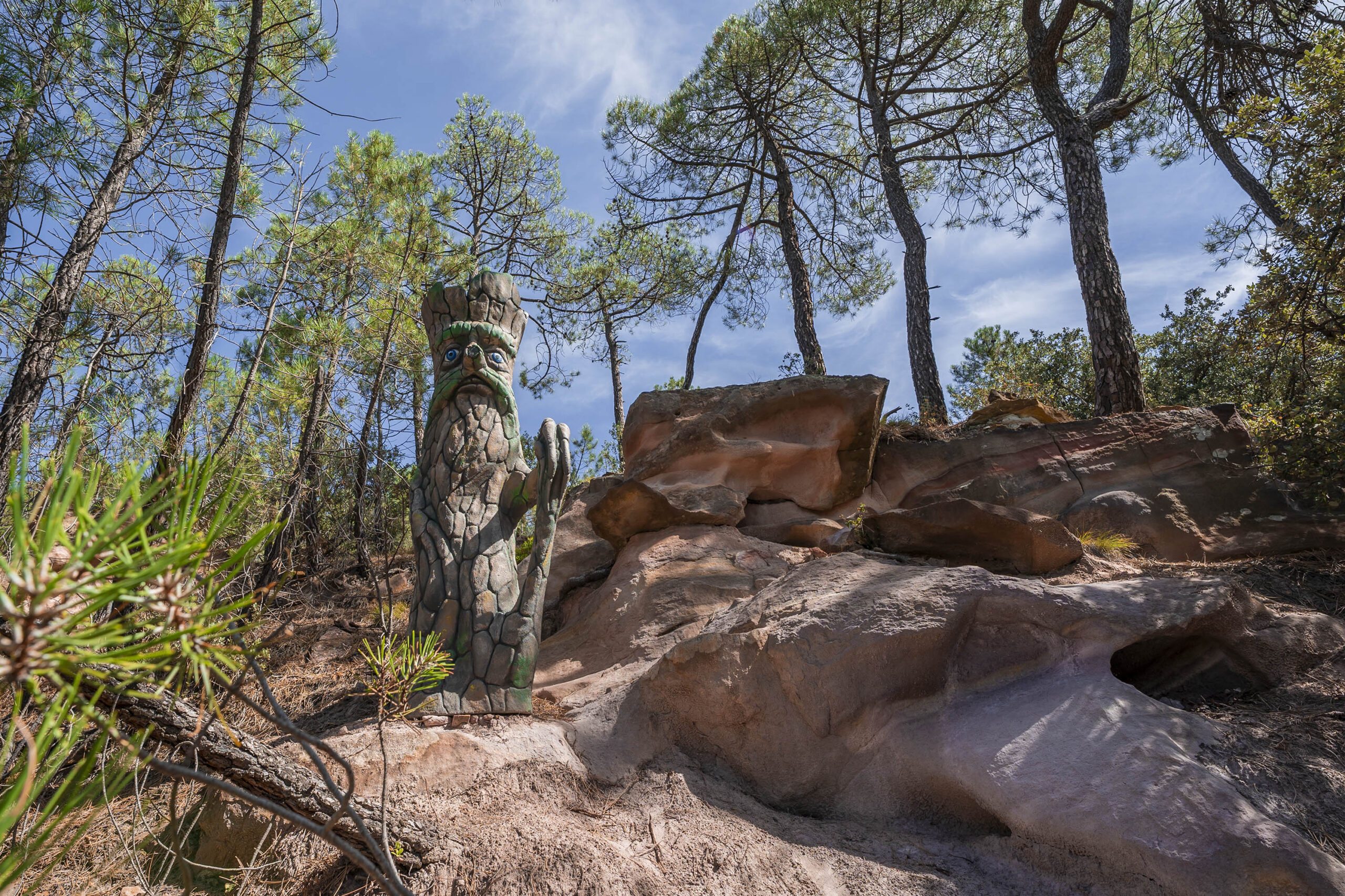 El sendero del Bosque de los Majalinontes es corto, de baja dificultad y sin apenas desnivel, lo que lo hace perfecto para familias con niños. A lo largo del recorrido se pueden contemplar esculturas en troncos que sorprenden a los más pequeños, como gnomos, hadas, dragones y guardianes del bosque. Eso sí, el camino no está adaptado para carritos de bebé ni sillas de ruedas, ya que algunos tramos son irregulares.