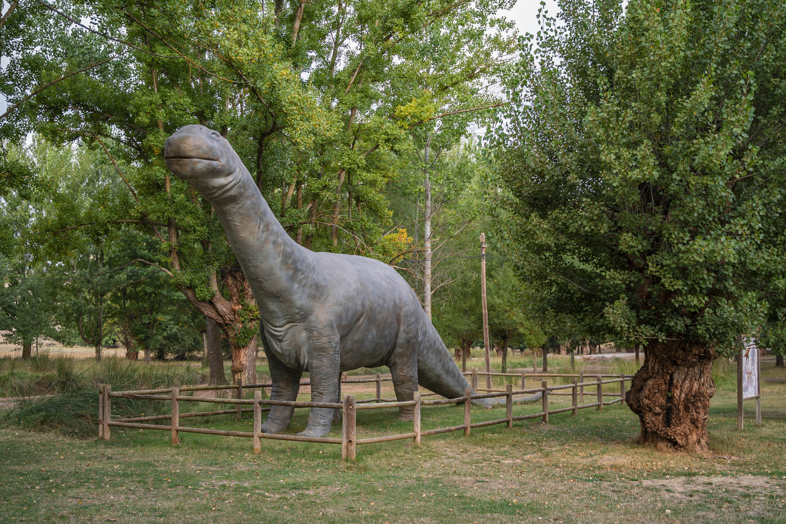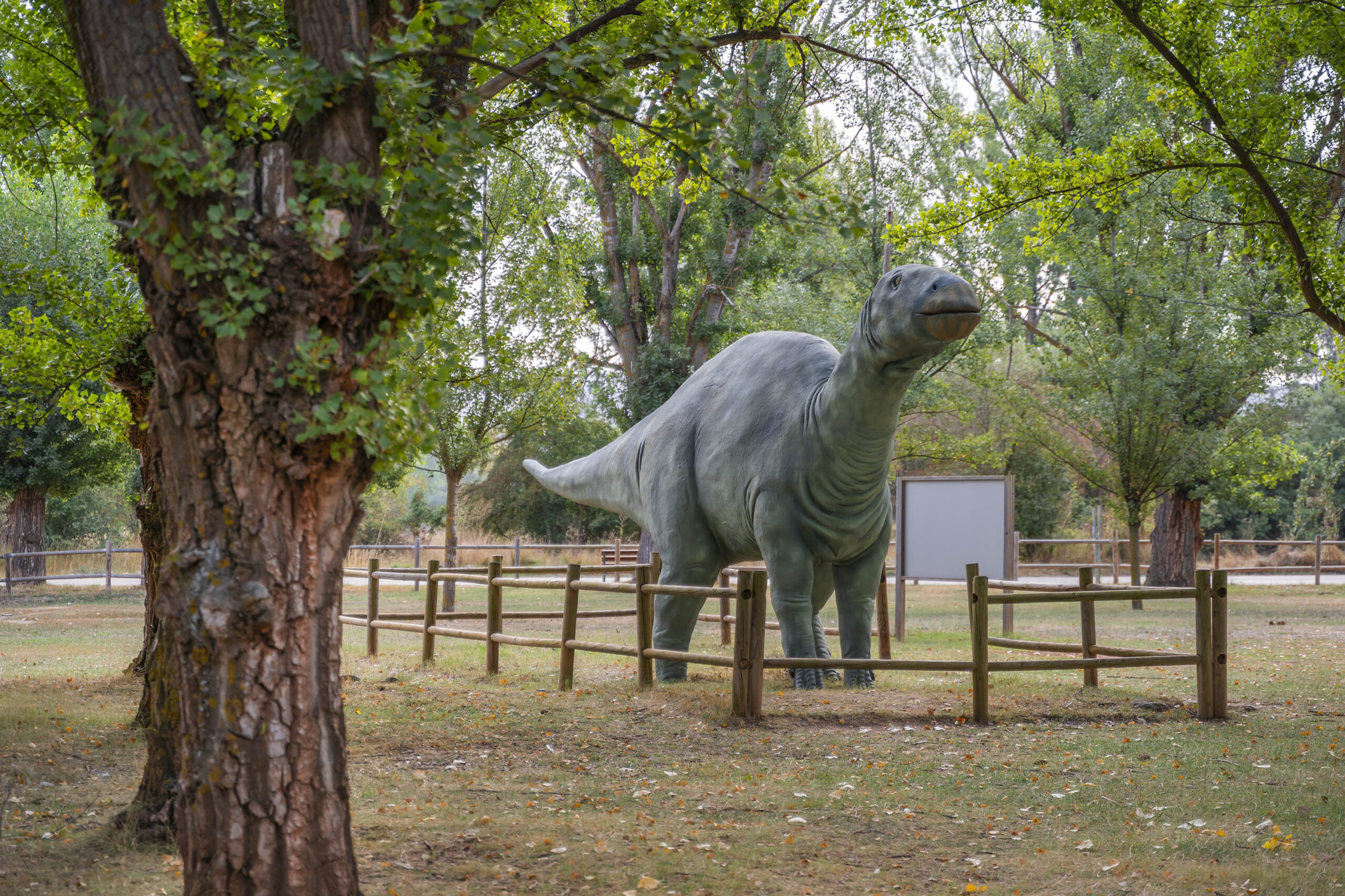 Avanzando río arriba por la margen izquierda llegamos al puente medieval, declarado Bien Catalogado del Patrimonio Cultural Aragonés. Más adelante, nos esperan las impresionantes réplicas de dos dinosaurios que habitaron la zona durante el Cretácico Superior: el Iguanodón y el Aragosaurus.